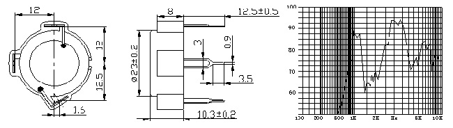 機(jī)械設(shè)置及尺寸: 頻率響應(yīng)曲線: