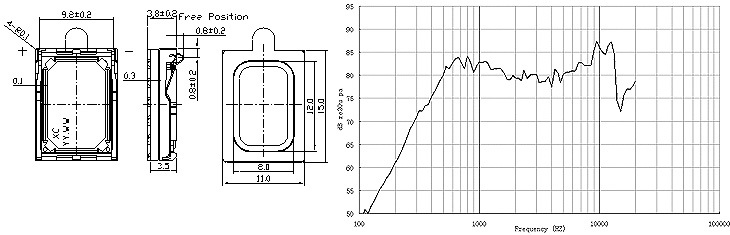 | 3 | 阻抗 | 8±15%?(@ 2KHz 1V without baffler) |