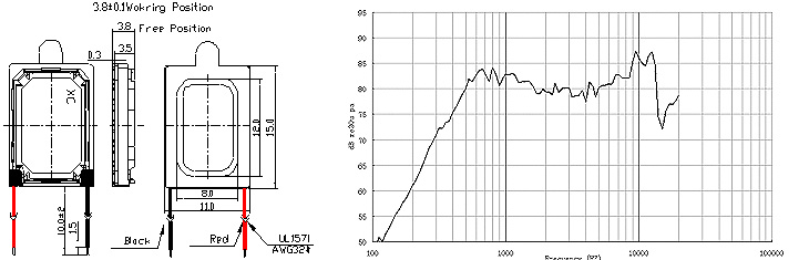 | 3 | 阻抗 | 8±15%?(@ 2KHz 1V without baffler) |