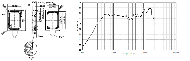 | 5 | 靈敏度(in free air) | 82±3dB SPL at 0.8k 1k 1.2k 1.5kHz @ 0.89V/ 0.1m |