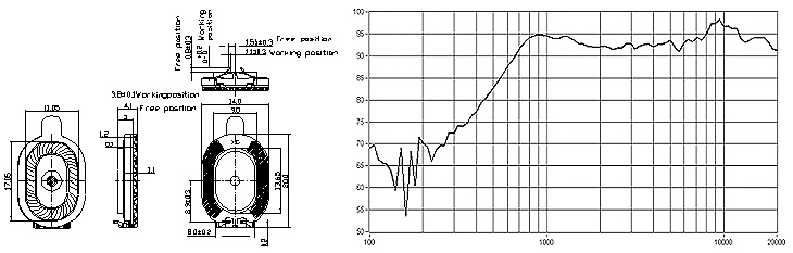 外形圖與尺寸: 頻率響應(yīng)曲線: