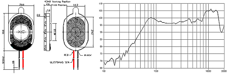 外形圖與尺寸: 頻率響應(yīng)曲線: