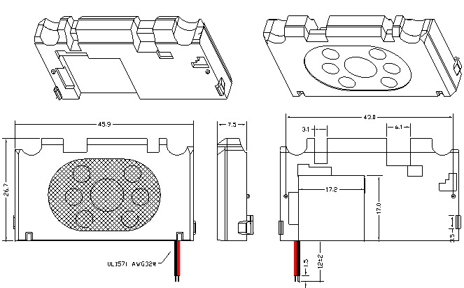 99±3dB SPL at 0.8k 1k 1.2k 1.5kHz @ 0.5w(2.0V) / 0.1m |