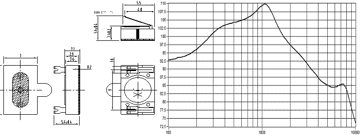 外形圖與尺寸:: 頻率響應曲線: